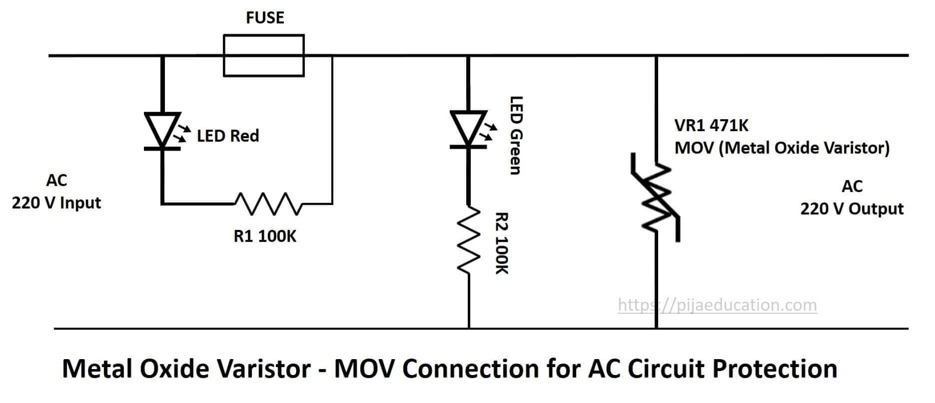 Circuit Diagram – Varistor connection for AC circuit protection